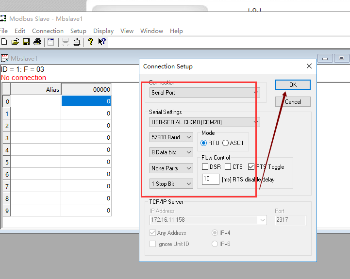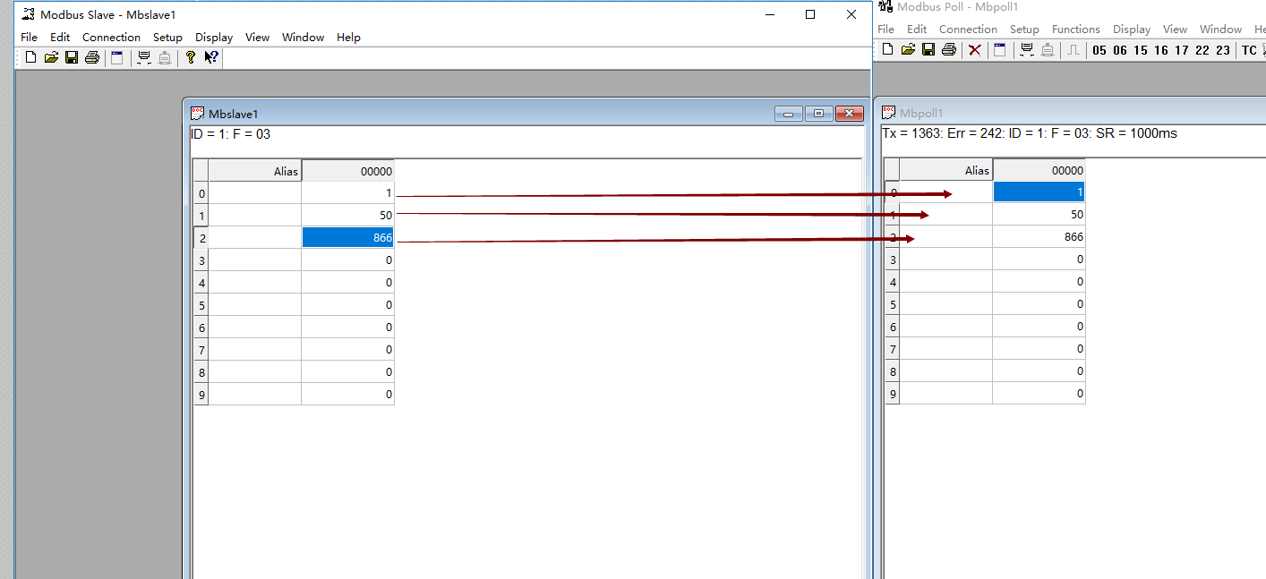 7、打开modbus poll和modbus slave软件,分别设置参数