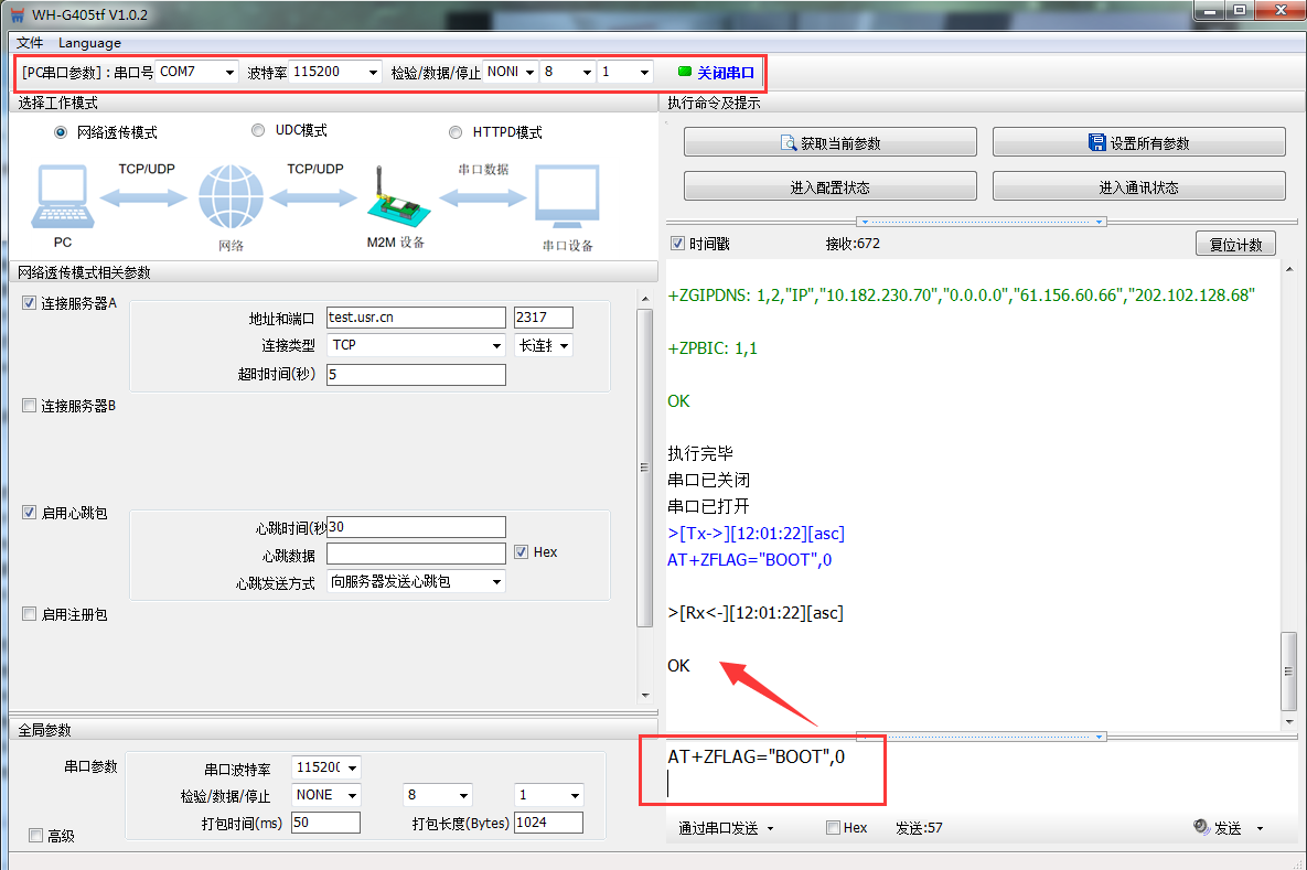 4.通过AT Interface COM口发送AT+ZFLAG=”BOOT”,0(注意:0后面有一个回车换行,并且都是英文状态下的字符),返回一个OK表示执行成功。