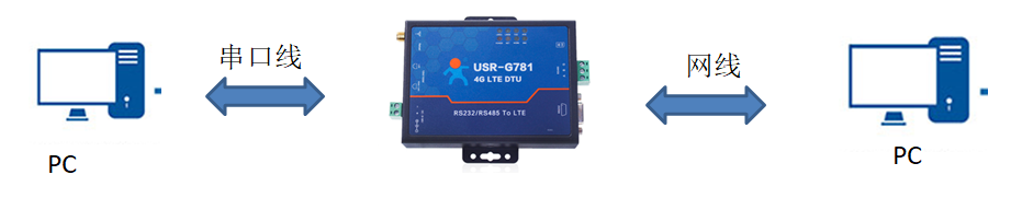 (1) 硬件连接: G781的串口通过USB转RS232/485接到PC上,LAN口通过网线链接到电脑的网口上,用我司提供的适配器供电。