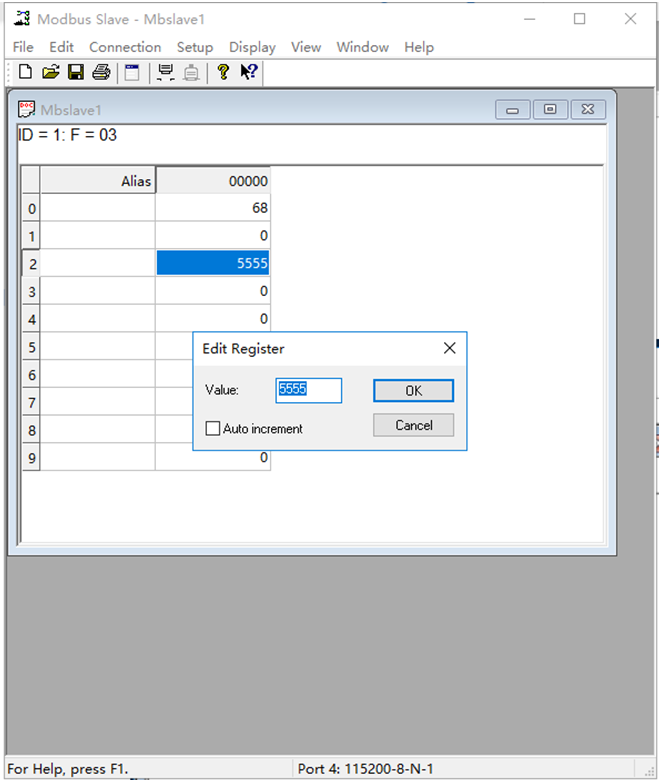 (9)从中软件修改数据,双击数据,在value框中将要修改的数据写入,点击ok即可进行修改。(slave和poll软件中均可进行修改)