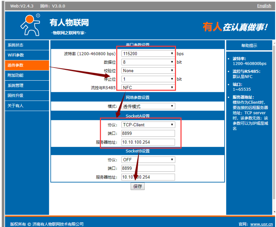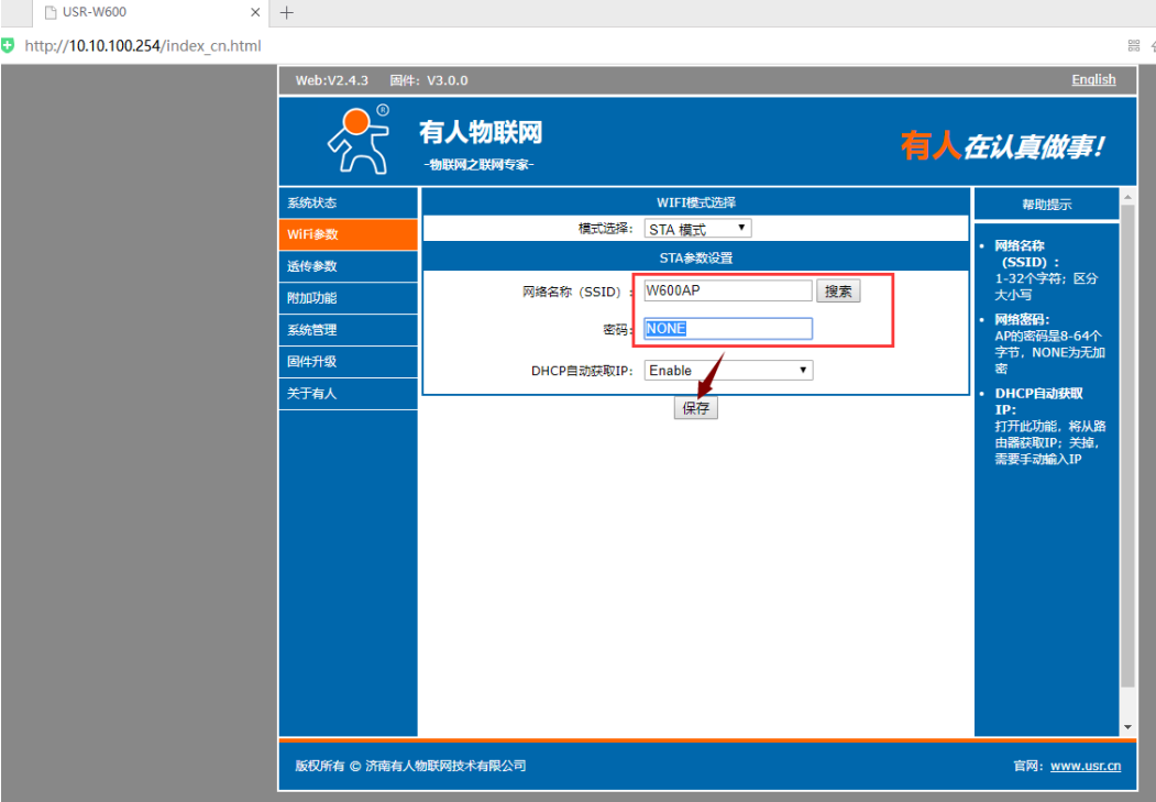 USR-W600 AP对STA透明传输