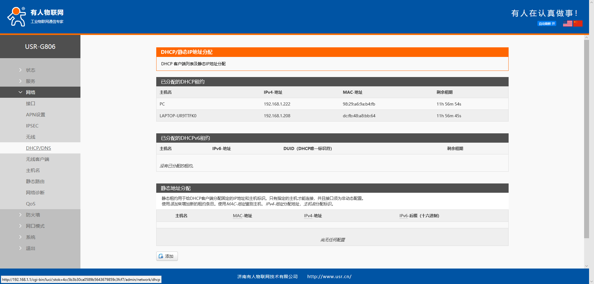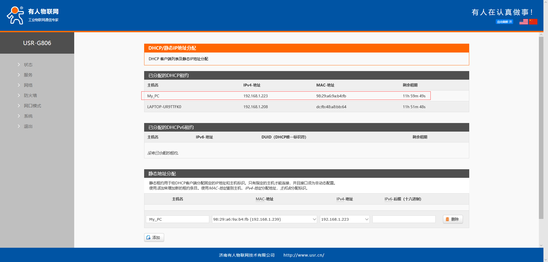 注意:若不知道设备MAC,且之前设备是DHCP接入G806,可以在该界面上已分配的DHCP租约看到设备的接入信息。
