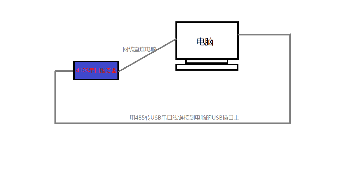 410S接入标准的电源适配器,然后将串口线转USB连接到电脑上,然后通过网线链接到电脑。