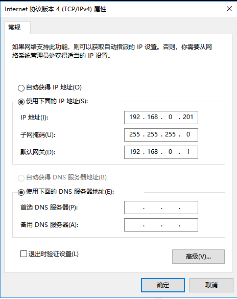 1. 打开电脑,链接设备的网卡(未识别网络是正常的状态),将改网卡的IP地址设置为静态的IP地址192.168.0.201