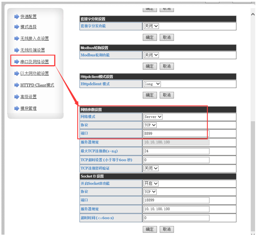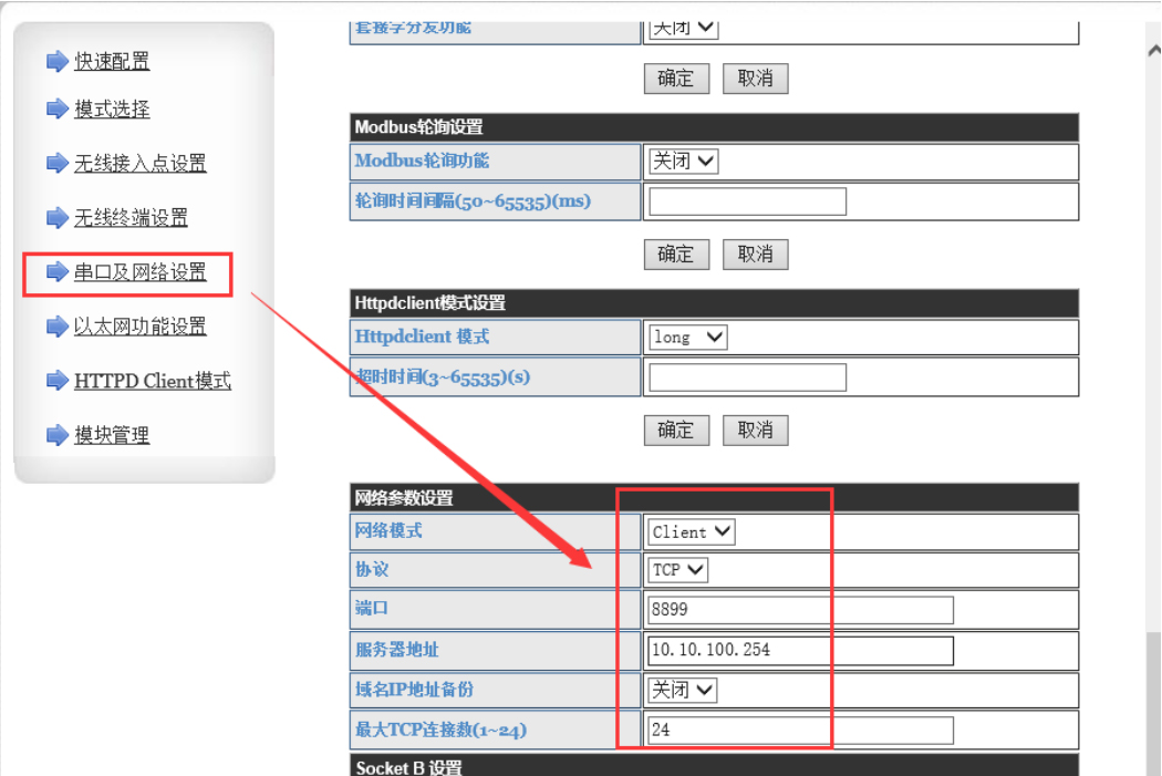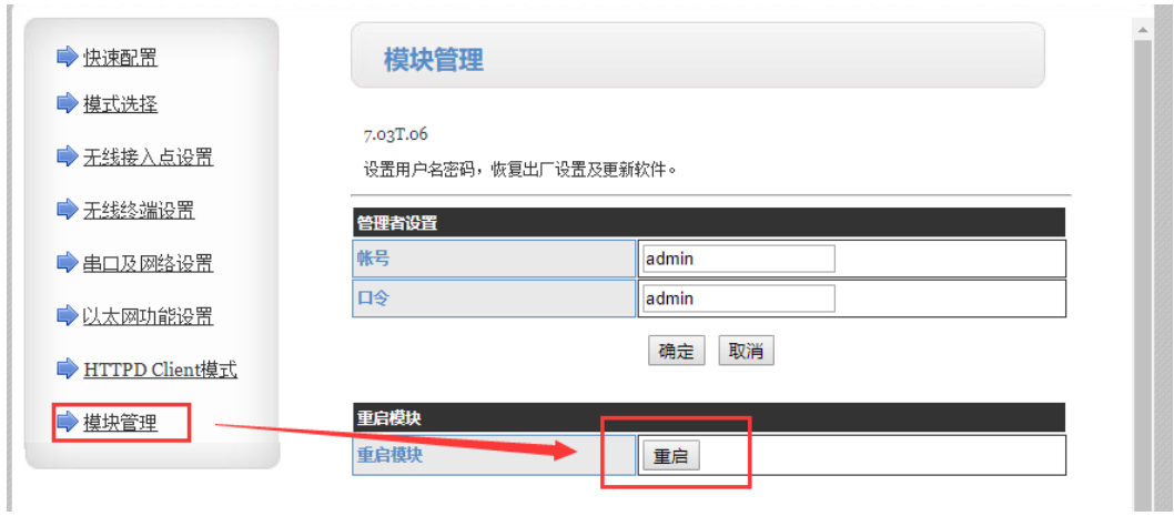 f.进入模块管理页面点击重启,重启使改动生效,此时对客户端的设置完成