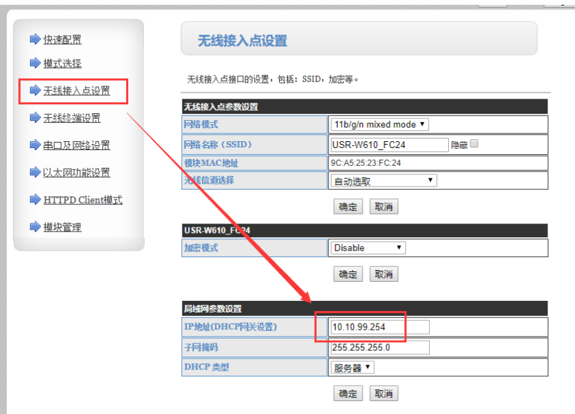 b.注意:需要进行LAN IP 的更改,建议从10.10.99.254-10.10.98.254