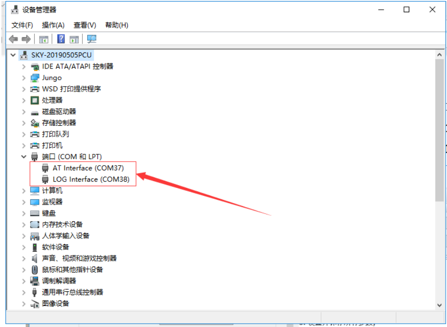 注意:检查驱动的安装情况,将780的USB口和电脑的USB口通过micro USB数据线进行连接,给780上电。打开设备管理器,找到端口一栏,打开查看是否有两个ZTE开头的虚拟串口号,如下图所示: