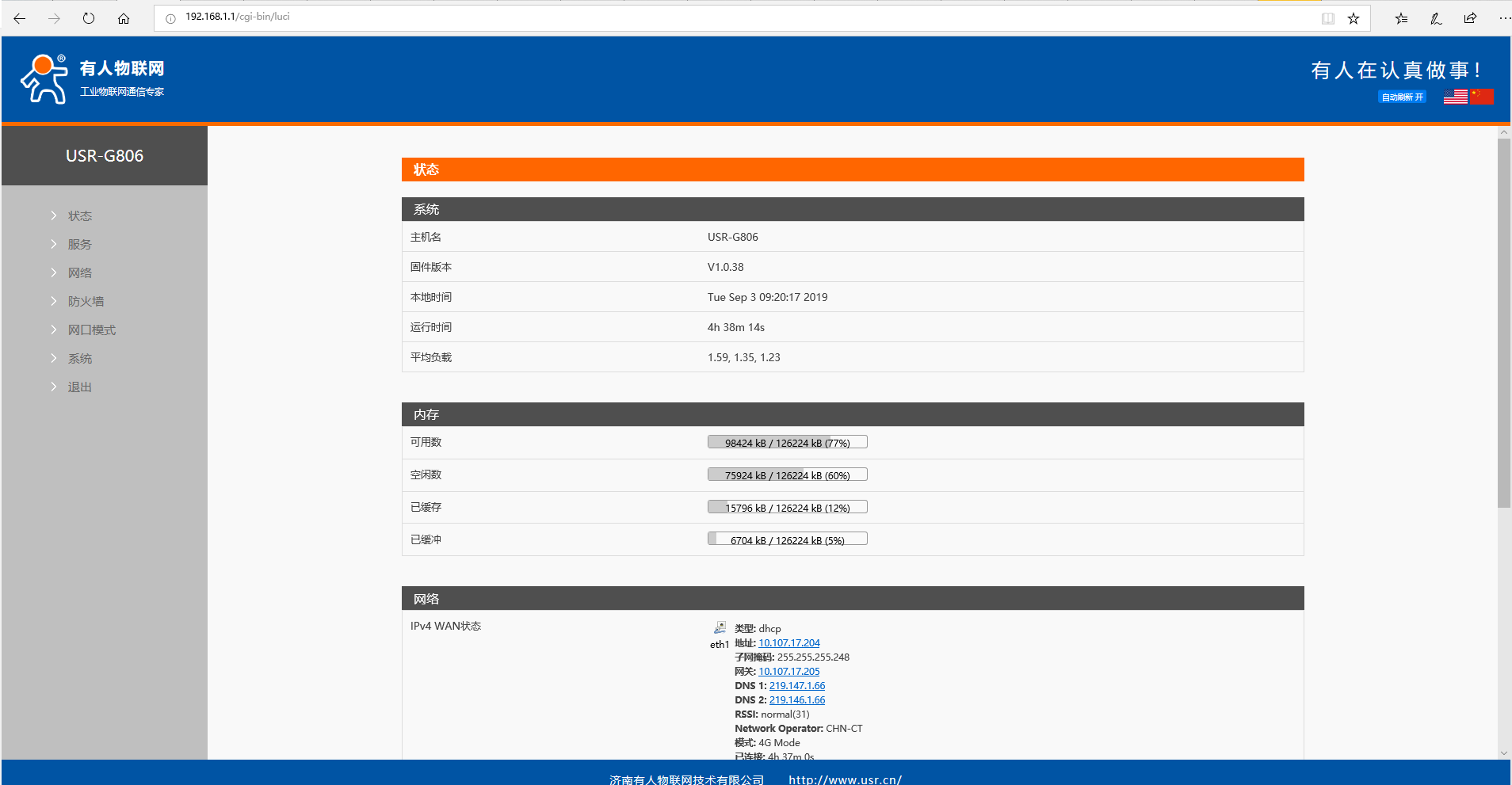 5、 上电之后,观察指示灯:PWR常亮、LAN 闪烁、4G 灯(3G+2G 灯)点亮、信号灯全亮代表信号良好