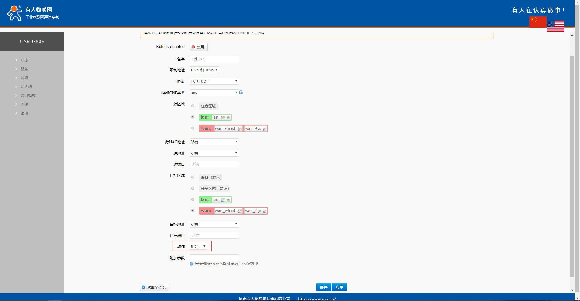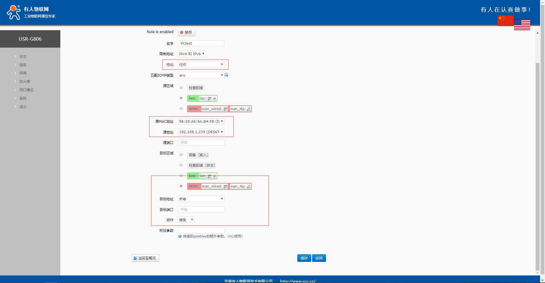 两条规则添加好之后点击保存应用,然后重启设备