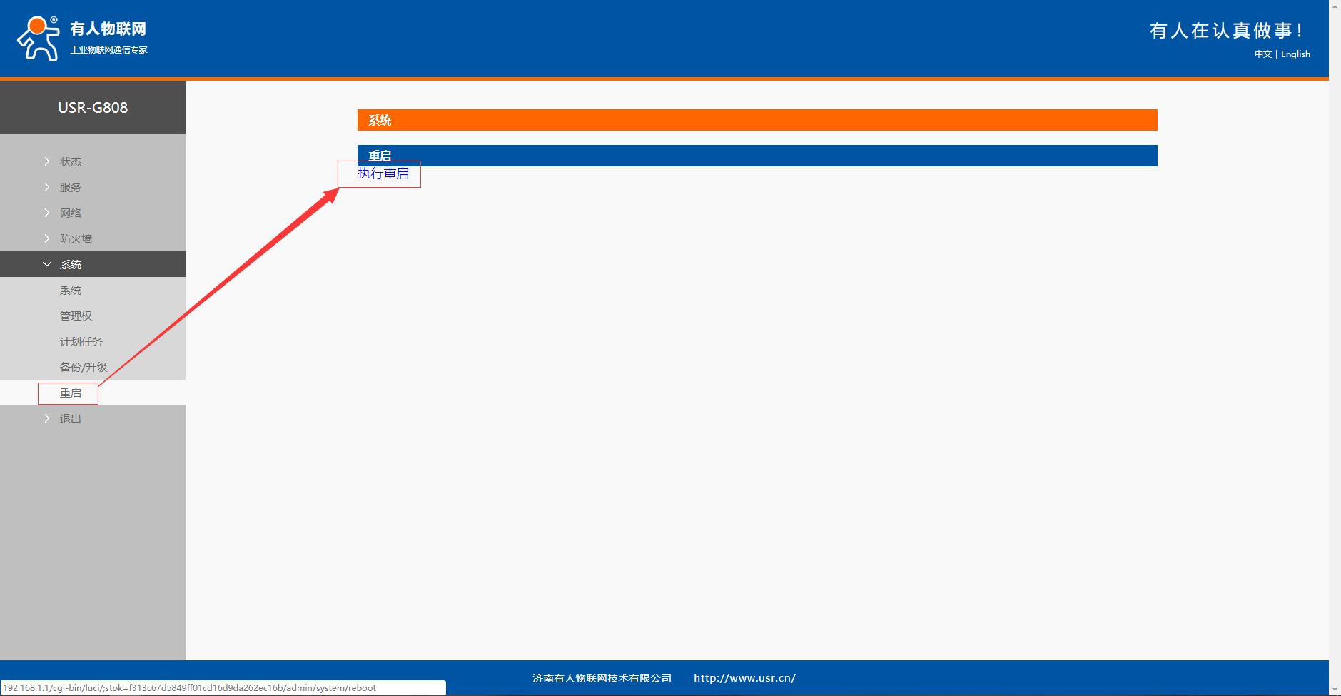 点击系统重启界面执行重启。