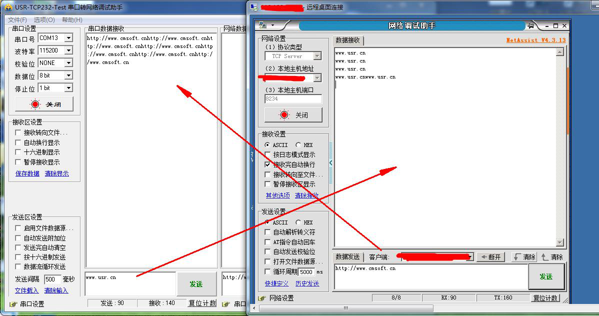 USR-TCP232-304 通过工业路由器连接远程服务器设置方法