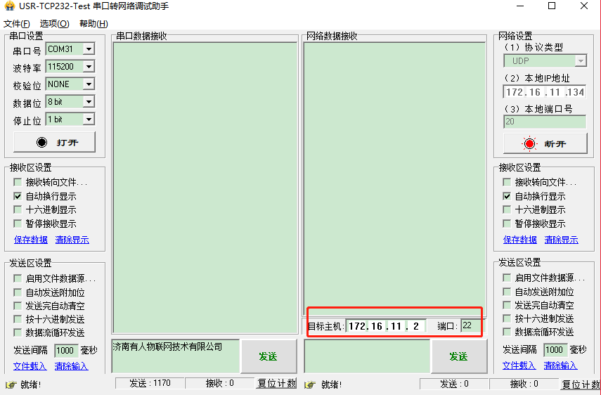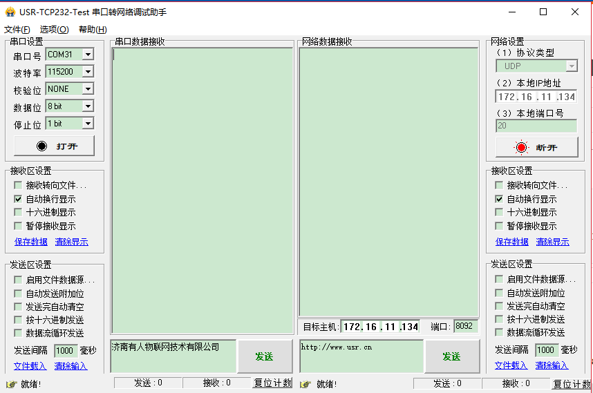 打开USR-TCP232-Test串口转网络调试助,下载地址http://www.usr.cn/Download/27.html