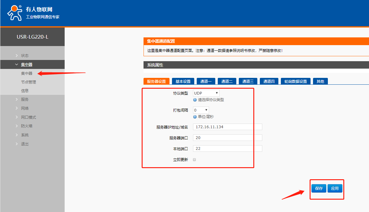 (4)设置集中器的应用ID,依次点击集中器,基本设置,应用ID,设置应用ID和lora相同。最后保存应用。