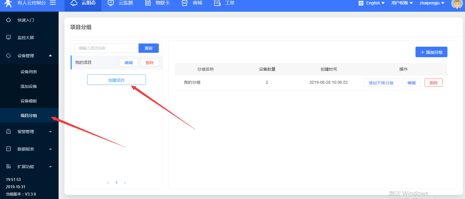 1. 首先在有人云平台创建一个项目分组,如图1(1),名称这里命名为usr_modbus_rtu,如图1(2),点击确定完成项目创建。