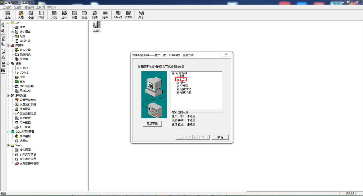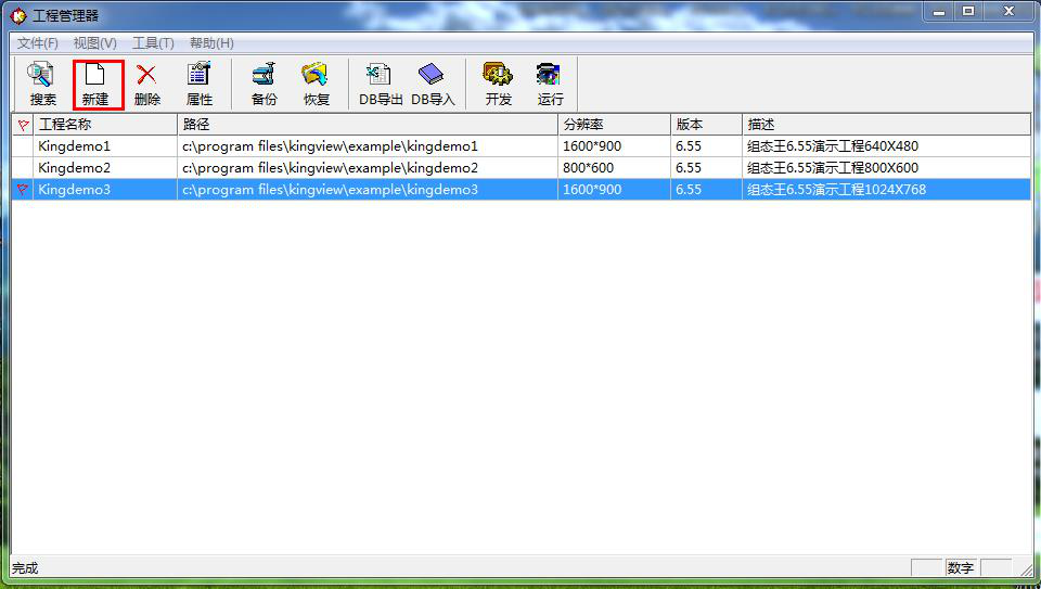 组态软件编程部分。新建一个工程,然后点击开发。