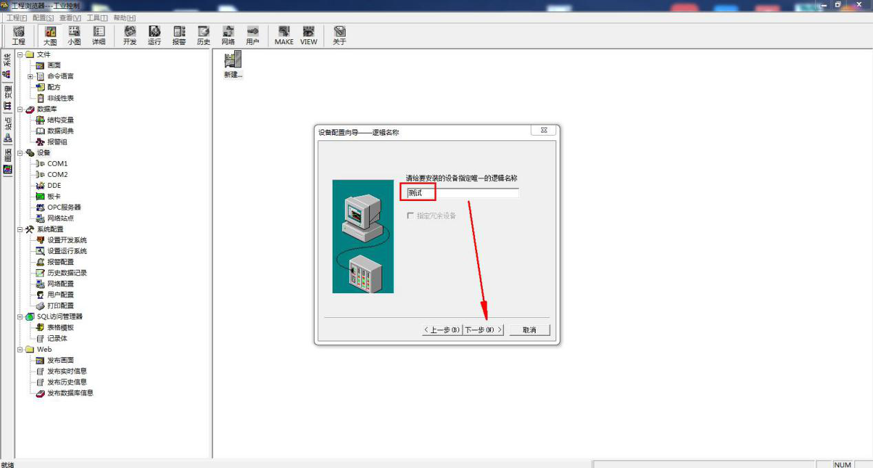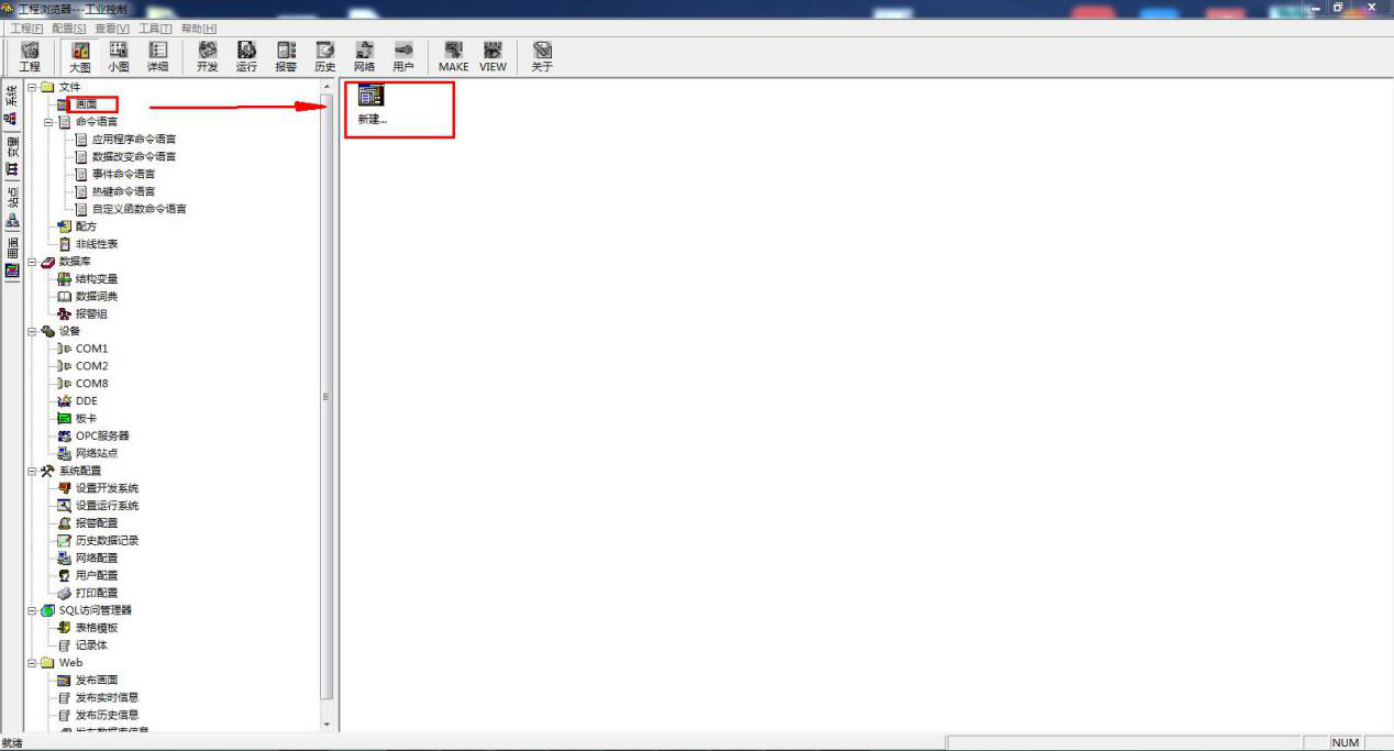 点击画面,新建一个画面。画面命名.然后双击,进入画面编辑栏