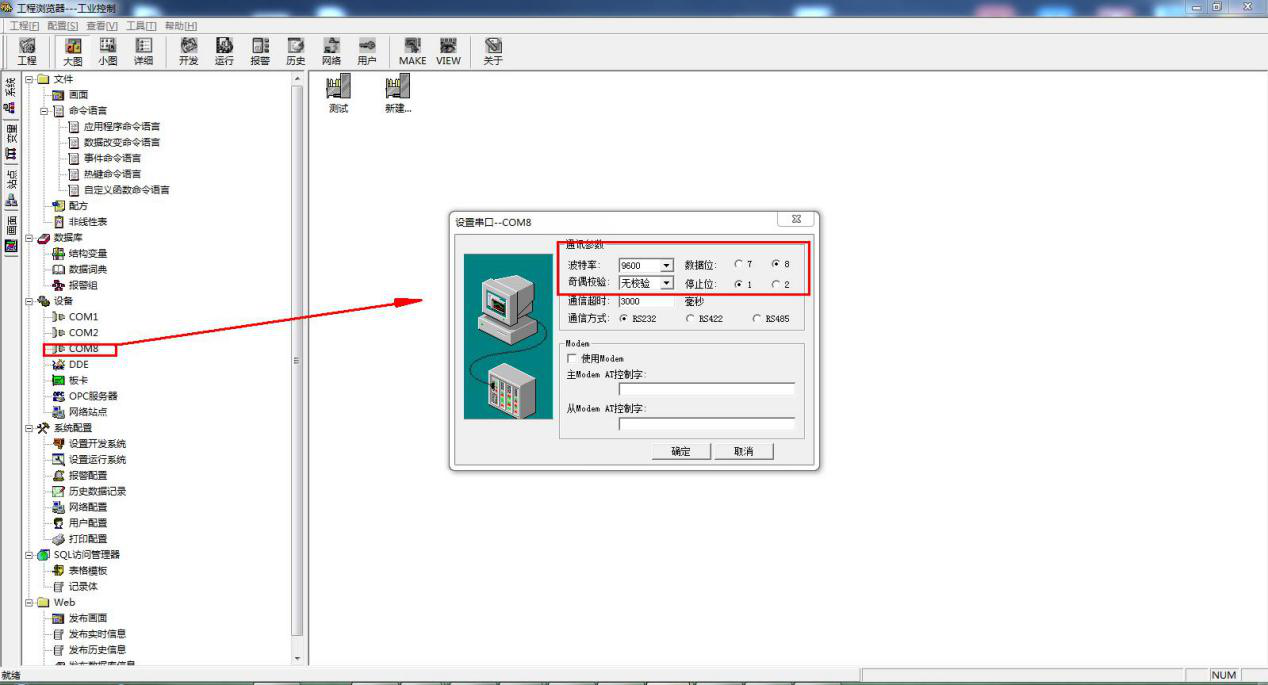 五、组态王参数设置: