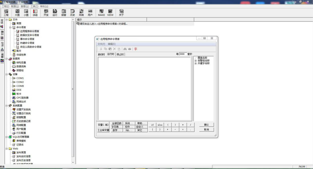 选择命令语言的应用程序命令语言。然后输入算法,MODBUSRTU 变量名 采集到的数据除以 10,然后将数据赋值给 MODBUSRTU3,此变量对应的是实 际的串口设备寄存器0地址中数据值。MODBUSRTU1 变量名采集到的数据除以 10,然后将数据赋值给 MODBUSRTU4,此变量对应的是实 际的串口设备寄存器1地址中数据值。MODBUSRTU2 变量名采集到的数据除以 10,然后将数据赋值给 MODBUSRTU5,此变量对应的是实 际的串口设备寄存器1地址中数据值。