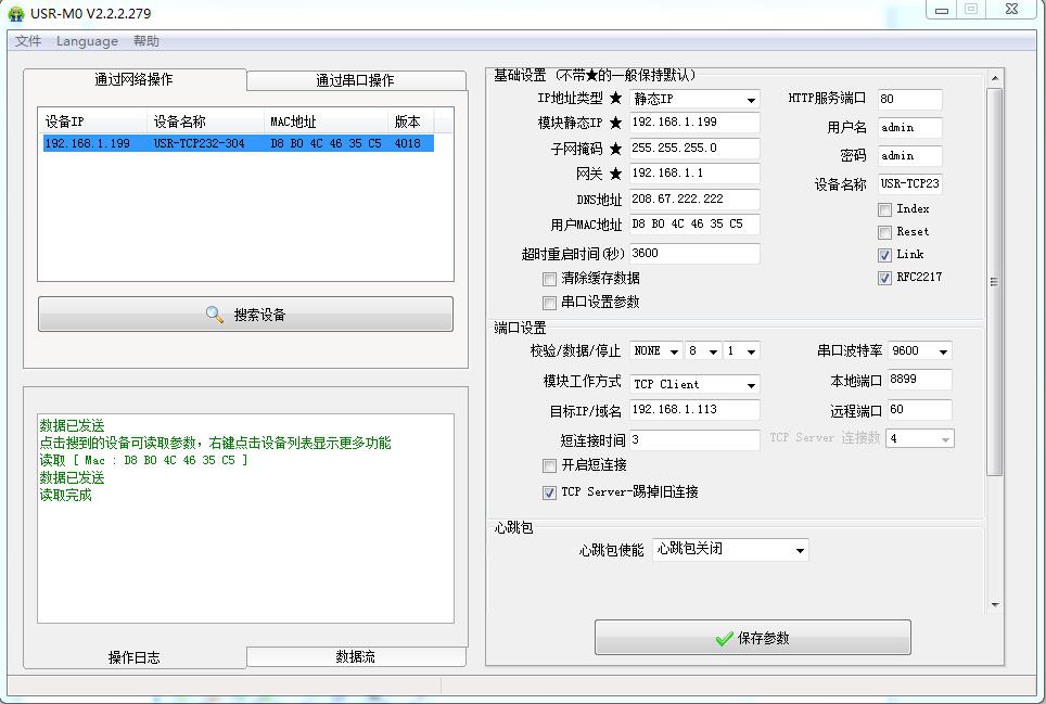 二、USR-TCP232-304参数设置: