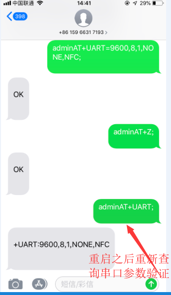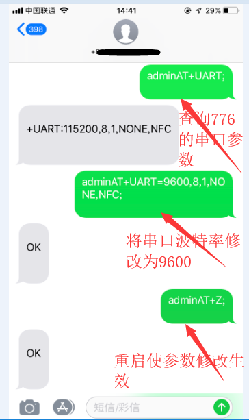 2.通过手机发送固定格式的短信给 DTU 内的手机号。短信AT指令格式:命令密码+AT 指令,