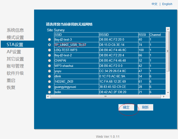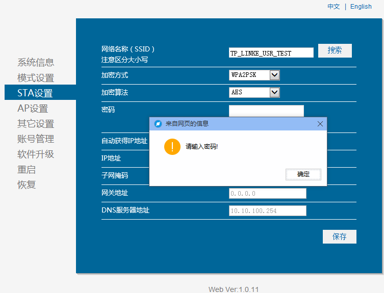 3:设置STA要连接的路由器。点击搜索。搜索无线路由器。输入路由器的连接密码。