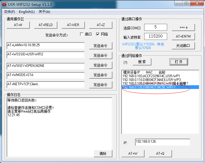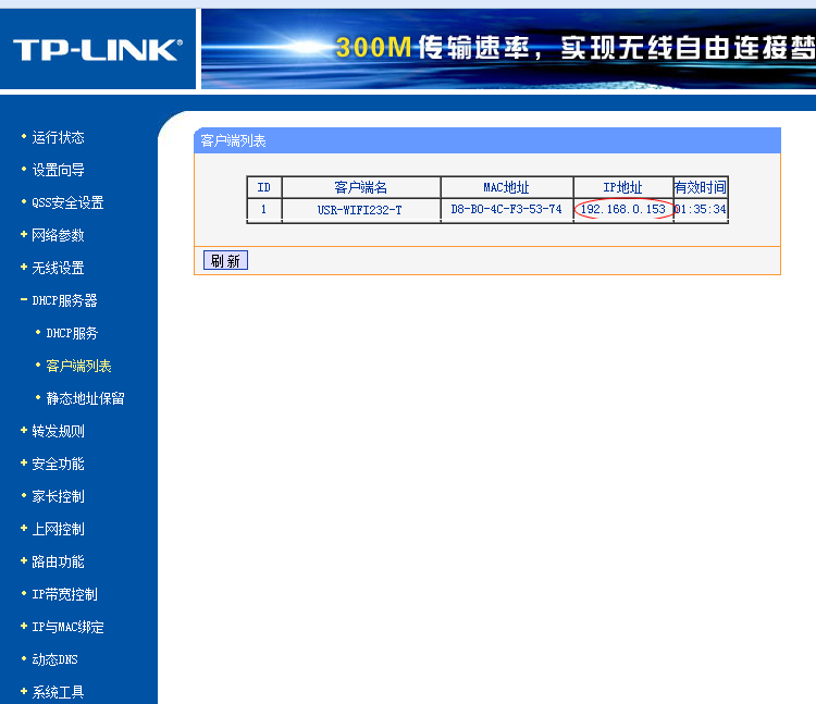 6:使用WiFi232-setup软件,搜索WIFI 模块在路由器上获取到的IP地址。在路由器的路由客户端列表查询模块分配的IP。