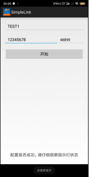 (4) 打开Simplelink APP,输入wifi密码端口号:48899,拉低模块 Reload 引脚 1-3 秒,则模块进入 Simplelink 配置,模块不断检测接收的数据包,成功解析出接收到广播包的 SSID 和密码后,模块主动去连接 AP。