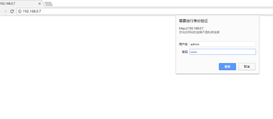 3、打开浏览器,输入网址:192.168.0.7进入N510的内置网页。用户名和密码默认为admin
