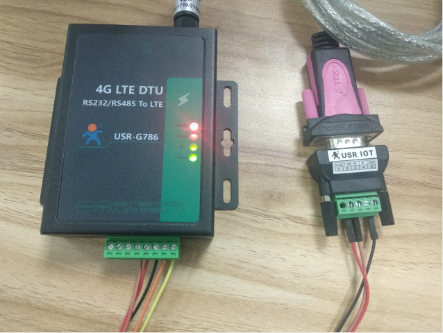 硬件连接:使用串口(485或者232)转USB线将USR-G786与电脑连接起来,USR-G786卡槽内插入可以上网的SIM卡。
