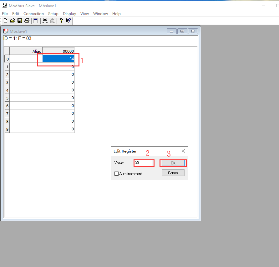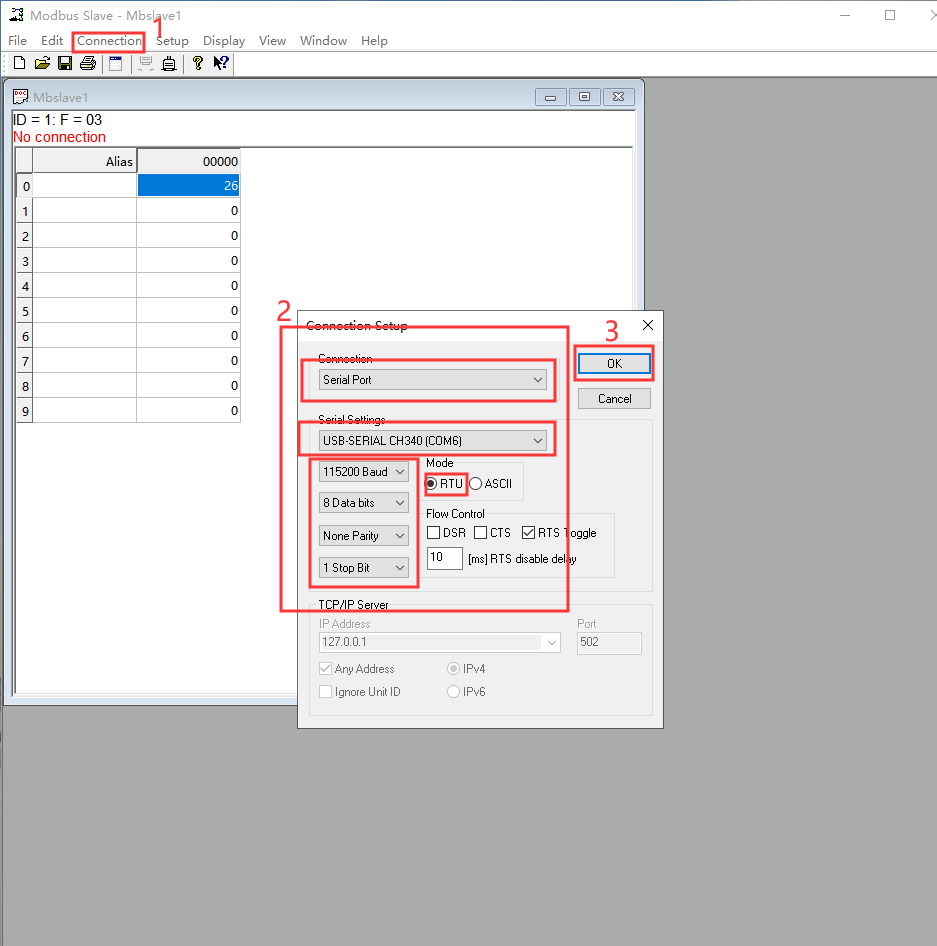 说明:用Modbus Slave软件模拟Modbus RTU协议的串口设备;