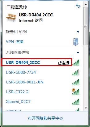 USR-DR404出厂默认是AP模式,电脑无线网卡去搜索USR-DR404的wifi。