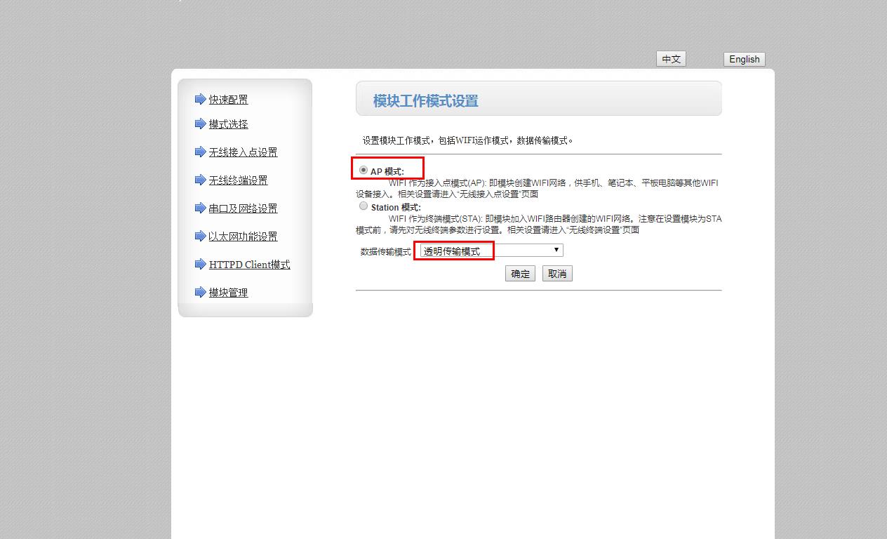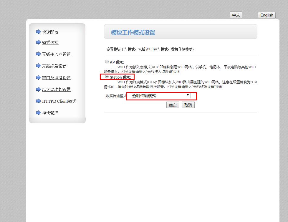 在网页上将工作模式设置为STA模式,保存参数。