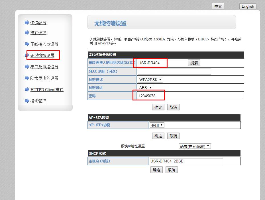 6、第二个USR-DR404配置STA模式参数: