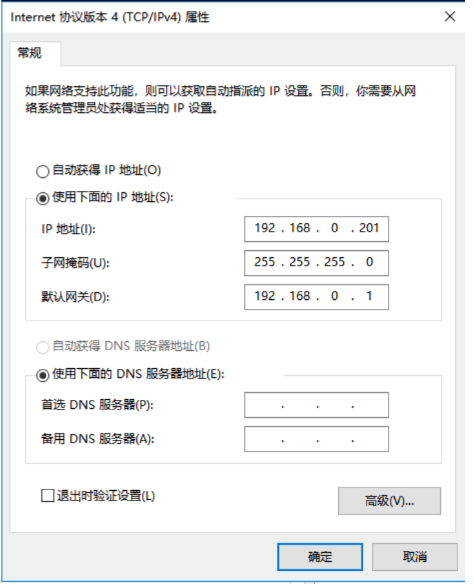 1. 打开电脑,链接设备的网卡(未识别网络是正常的状态),将改网卡的IP地址设置为静态的IP地址192.168.0.201