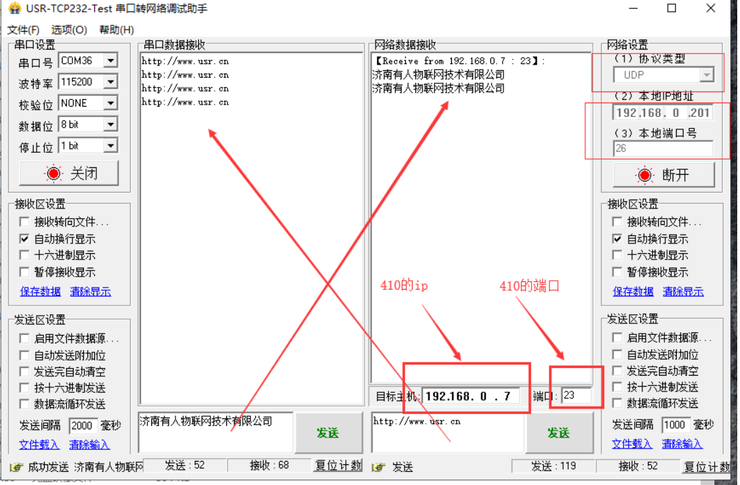 USR-TCP232-410S(M4)直连电脑UDP通信基本测试