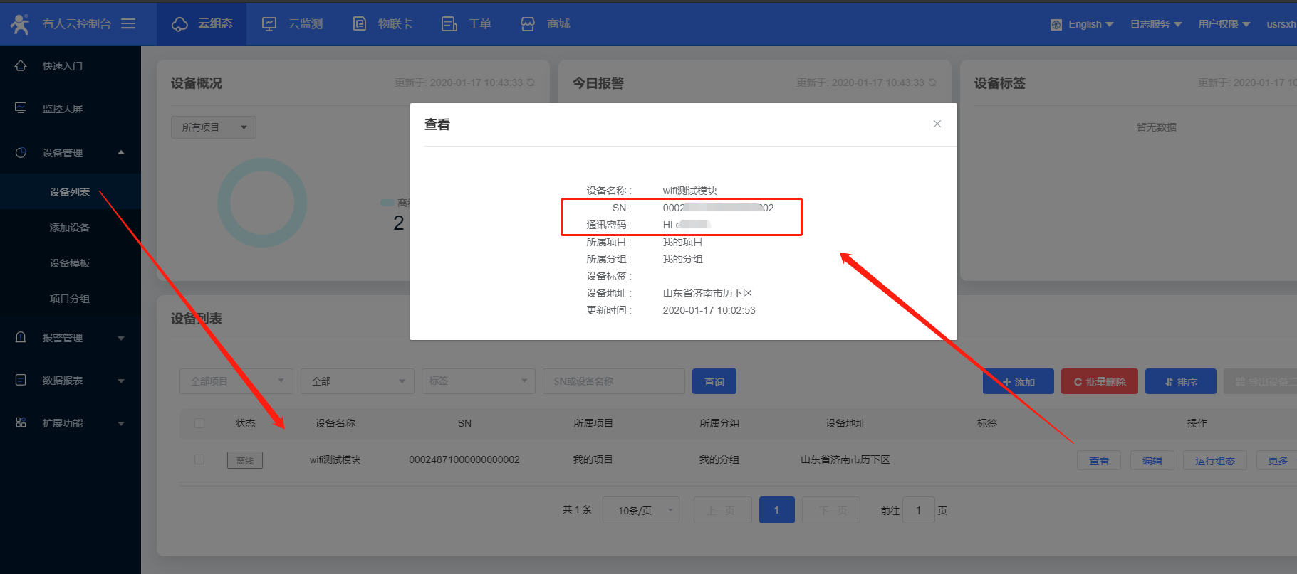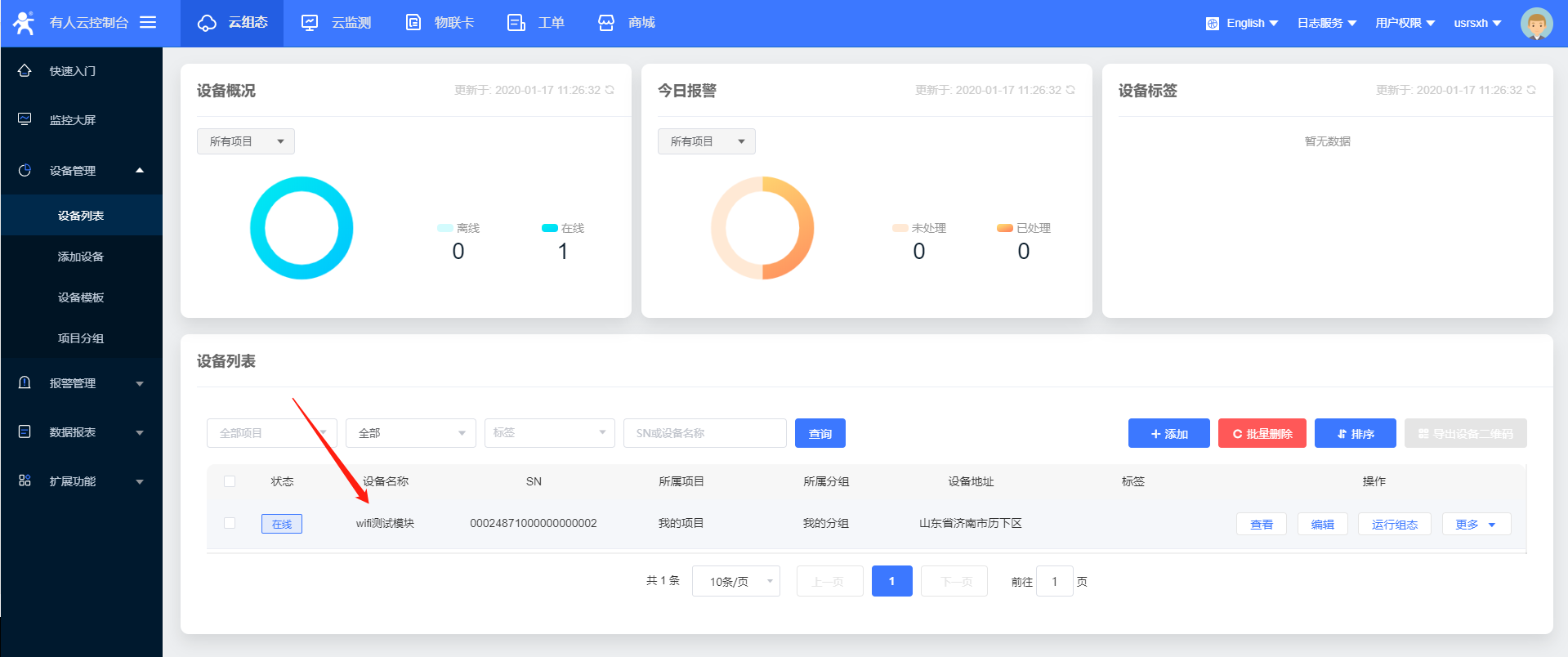15、设置完所有的参数要重启设备,稍等一会,在有人云界面,您会看到设备已经上线