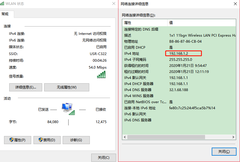 (2) 连接成功后或者电脑获取到IP:182.168.1.2, 把除了wifi的网卡禁用。