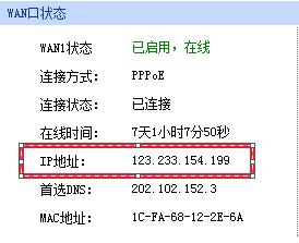 路由器获得的对外网IP: