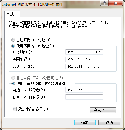6、修改电脑IP为192.168.1.109