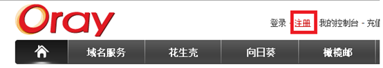3、在页面上方点击“注册”来注册自己的花生壳网站的子域名: