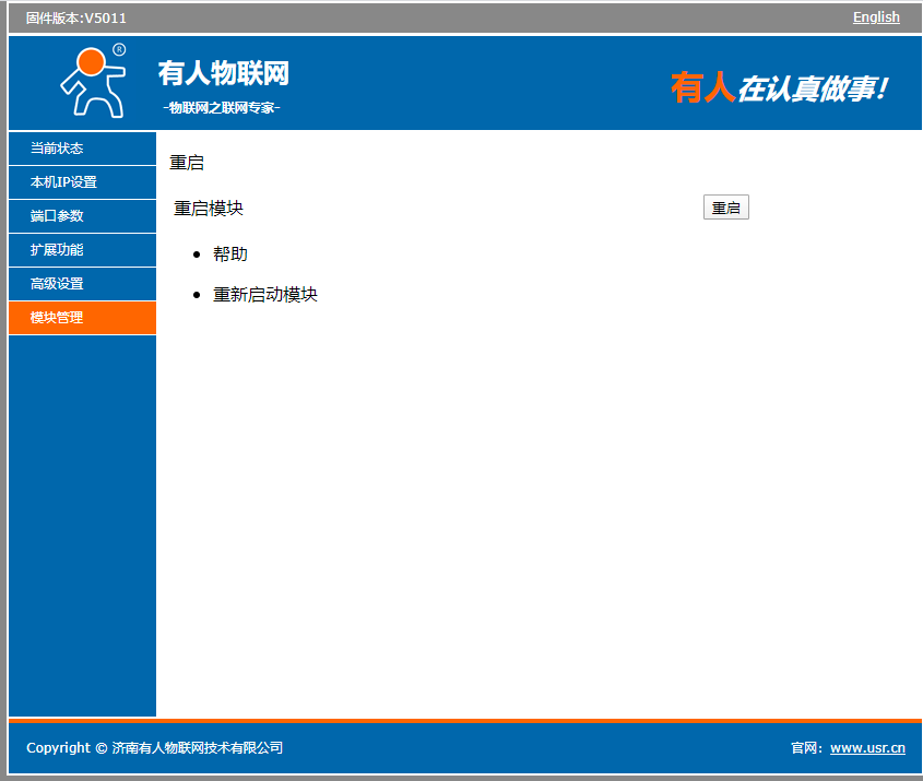 7、在“模块管理”处重启模块。重启成功之后会提示“重启成功”。