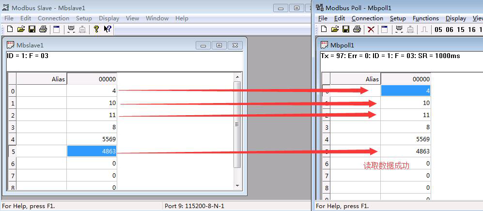 6. 打开modbus poll和modbus slave软件,分别设置参数