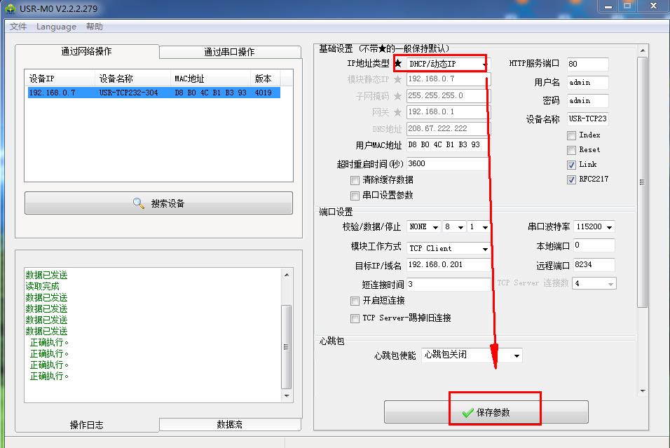 USR-TCP232-304网口用网线接路由器,电脑也连接同一个路由器。USR-TCP232-304用M4设置软件设置DHCP,动态获取IP。