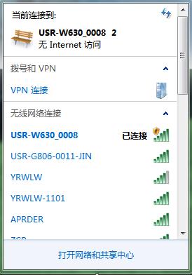 举例:我用USR-W630连接的路由器wifi名称是USR-G806-0011-JIN,密码是88888888。