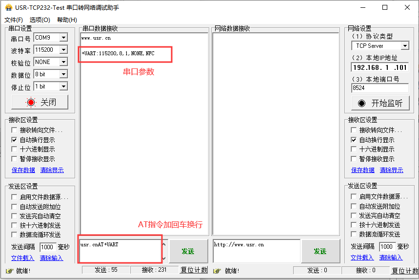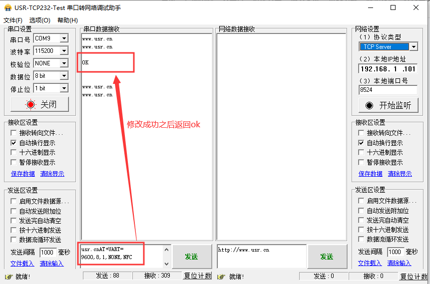usr.cnAT+UART=9600,8,1,NONE,NFC,修改成功之后模块会返回ok。