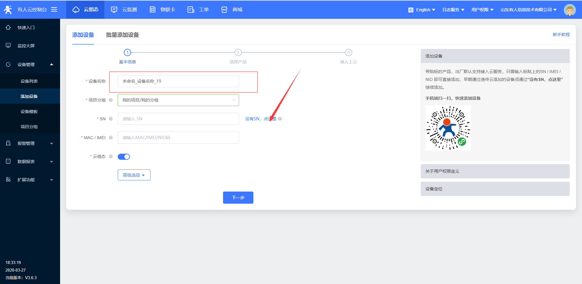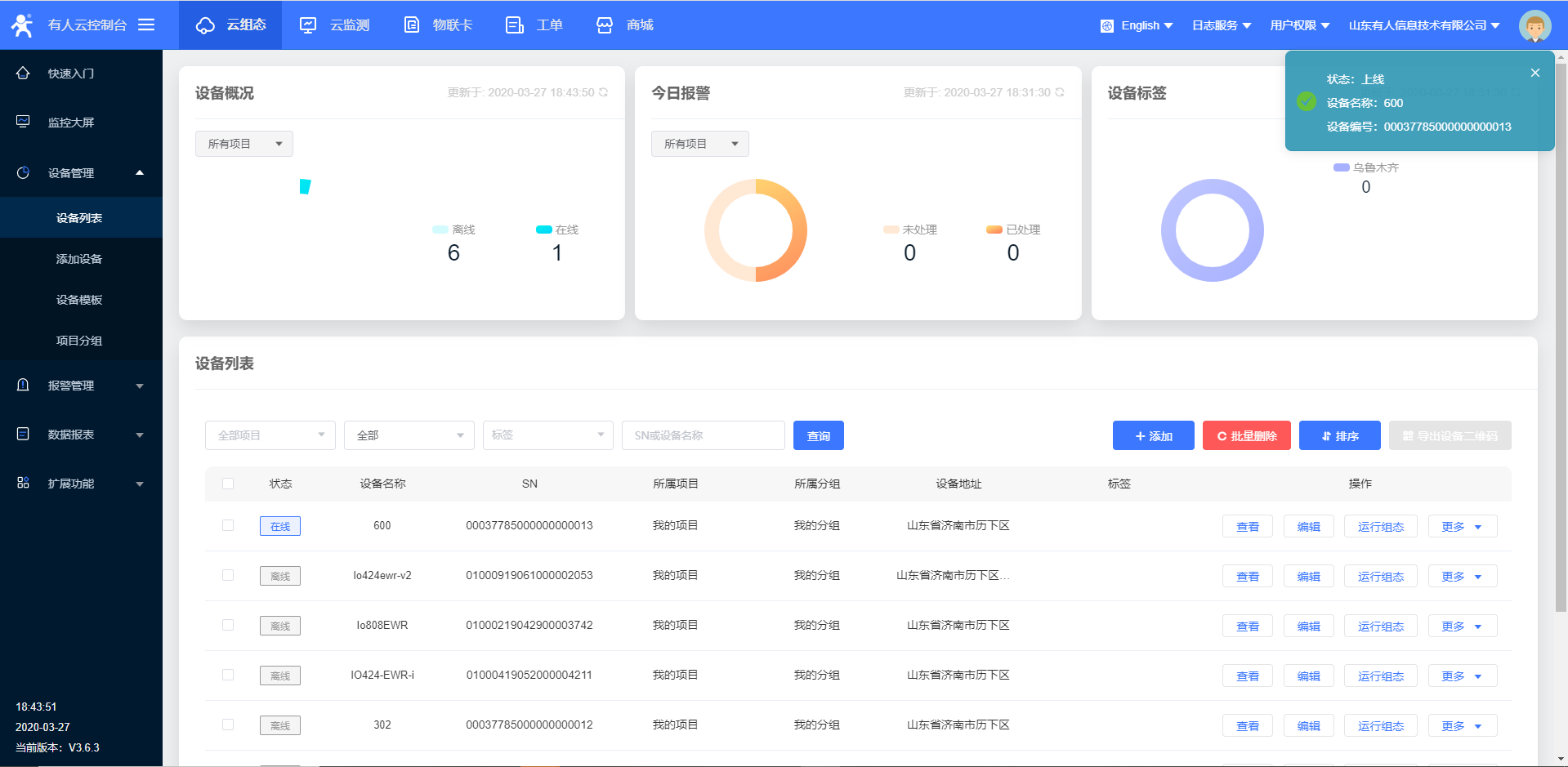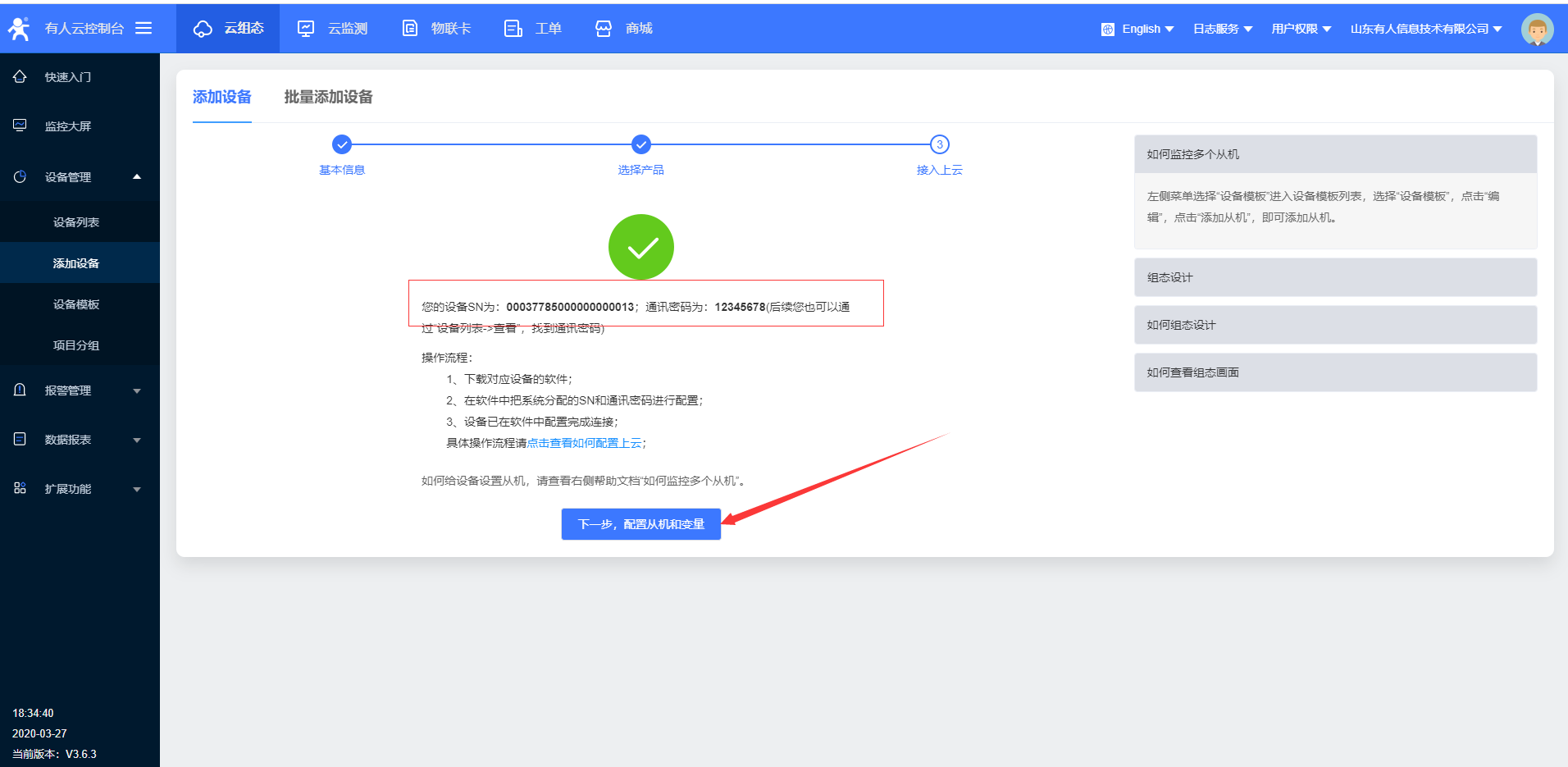 10.设置完所有的参数要 重启设备,稍等一会,在有人云界面,您会看到有人云已经上线