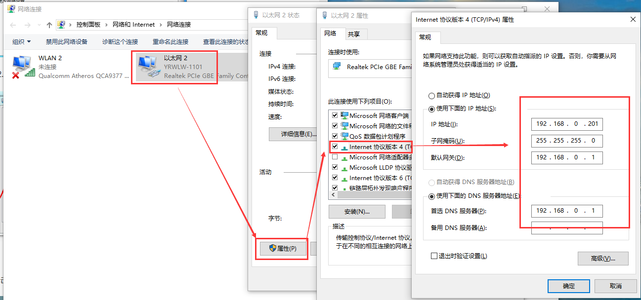 3、给电脑设置静态IP,设置成301默认连接的 IP:192.168.0.201