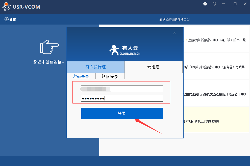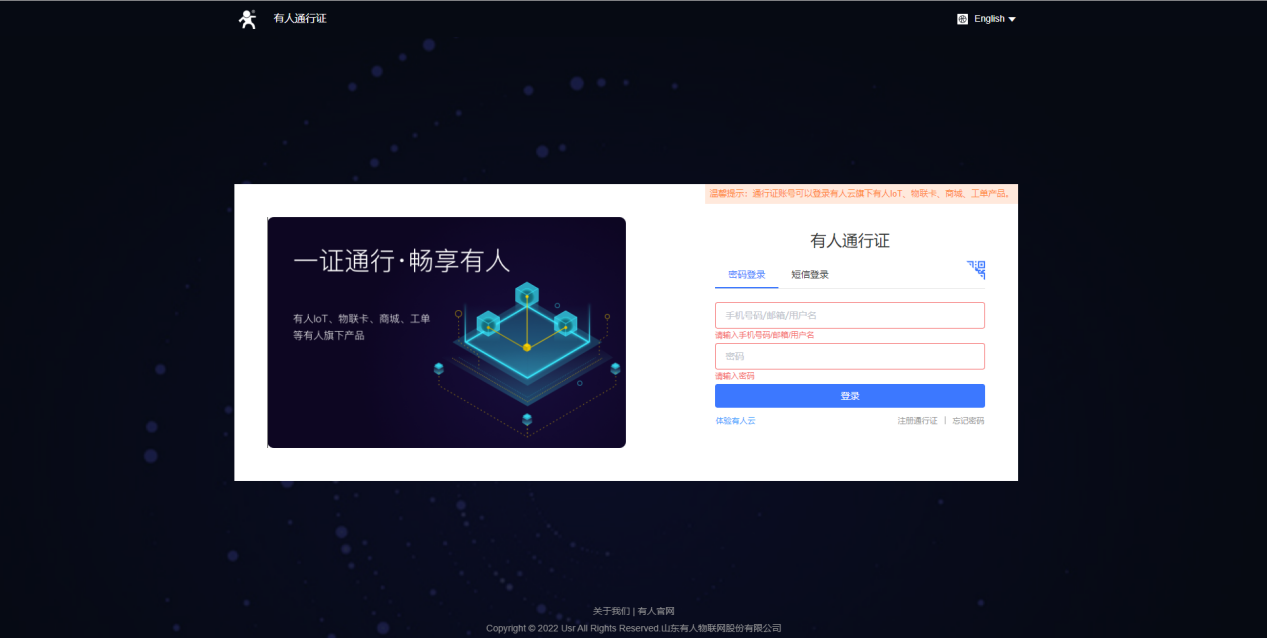 1、登录有人云(若没有有人云账号,先注册),输出账号密码登录。https://account.usr.cn/#/login_cps?type=mp_scada