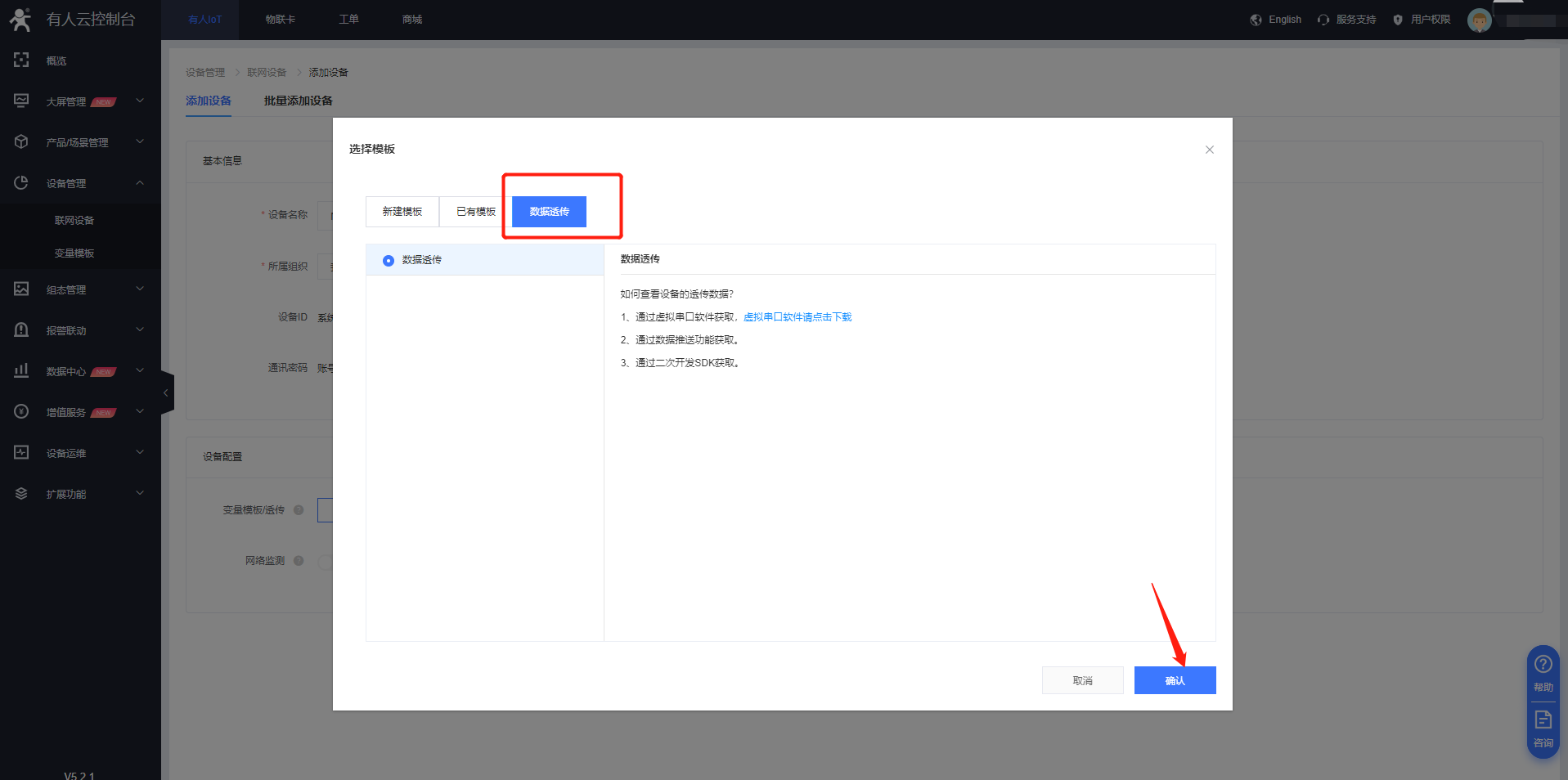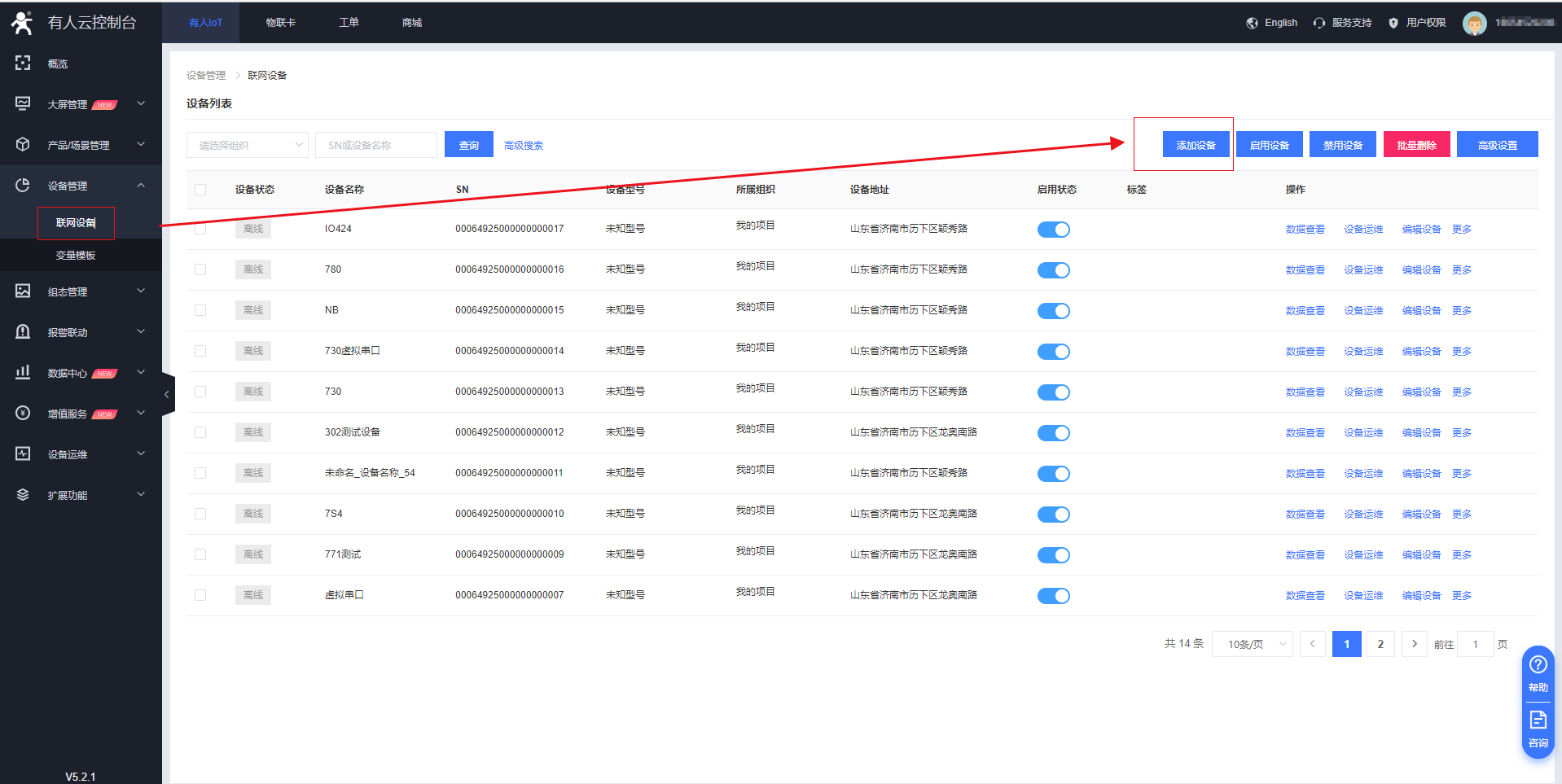 2、添加设备(名称可自定义,按照不支持Sn方式添加设备)