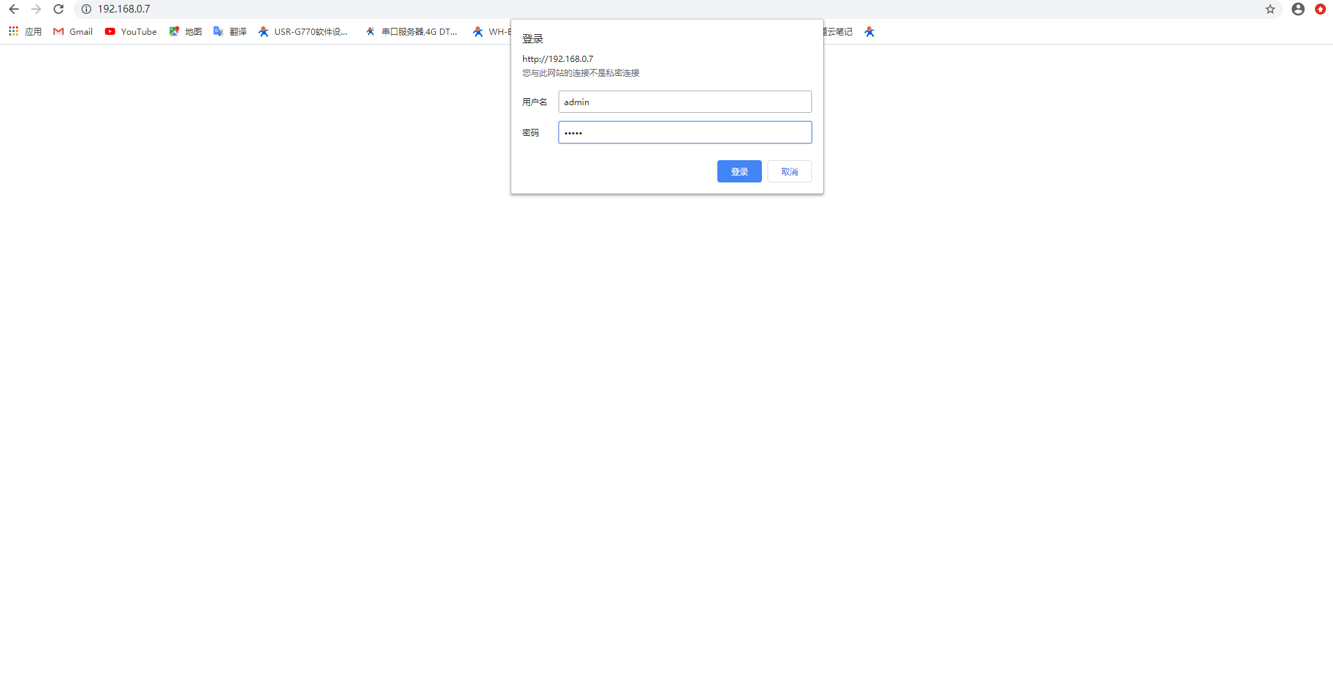 8、浏览器输入IP 192.168.0.7进入N540的内置网页,用户名:admin密码:admin(也可使用N540的设置软件进行配置)